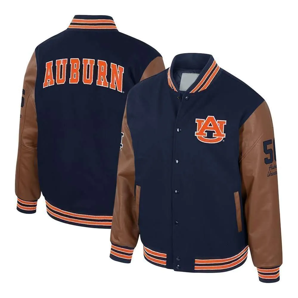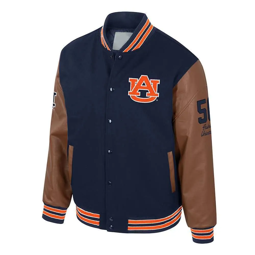 Auburn Tigers Navy and Brown Letterman Jacket
