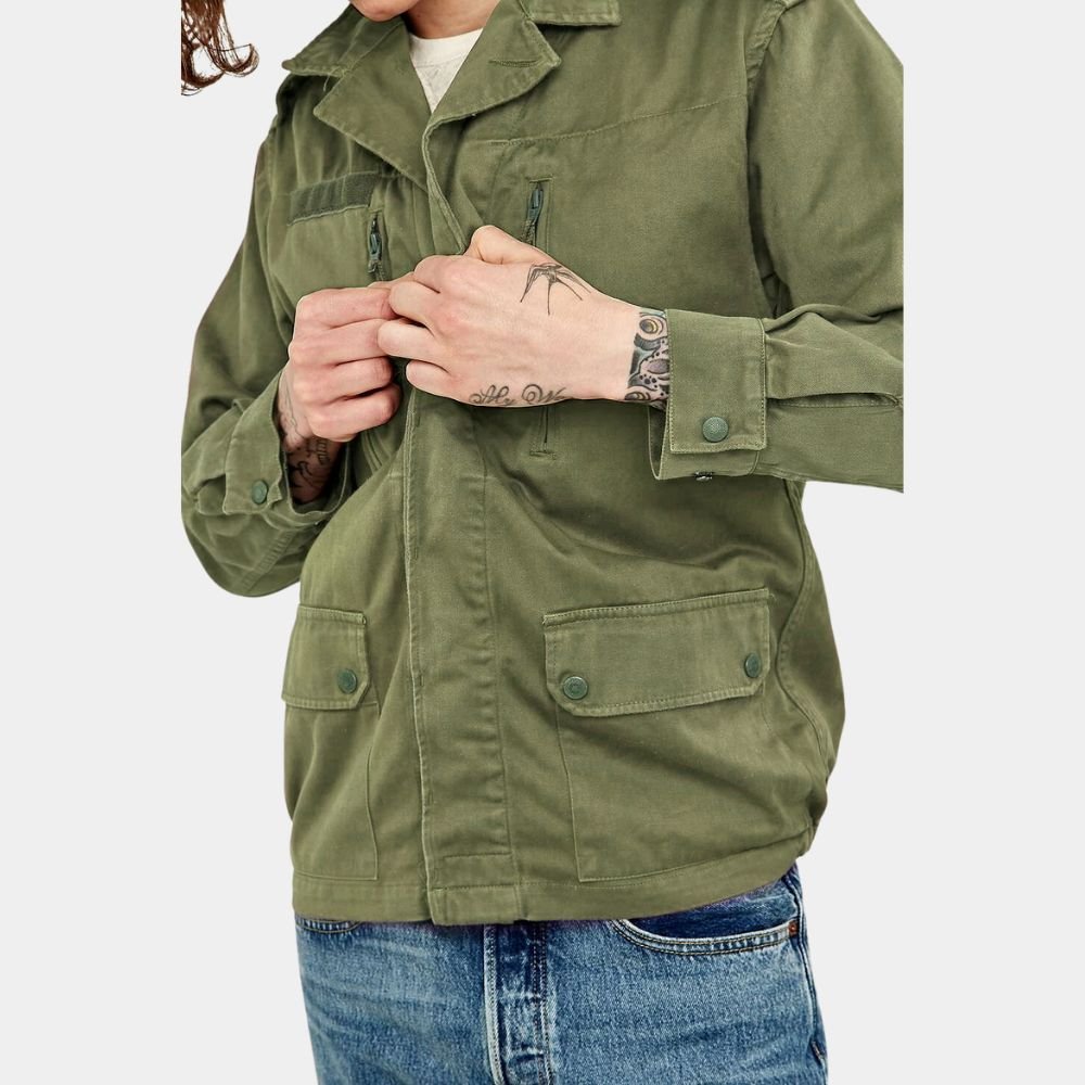 External: Wool and Leather Internal: Viscose Lining Closure: Buttoned front closure Pockets: Two Outside and Two inside Pockets Collar: Rib knitted style collar Full length leather sleeves Cuffs: Rib Knitted Cuffs Rib knitted hemline Color: Black