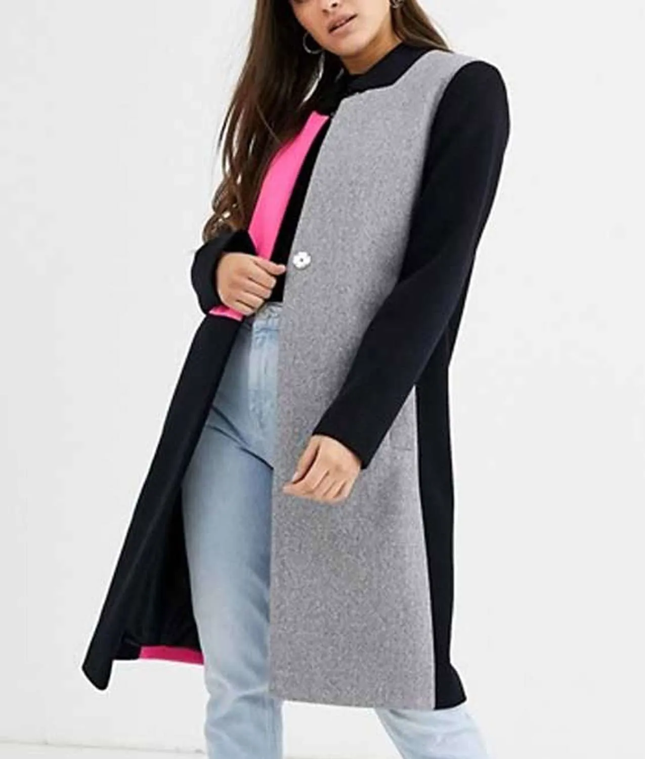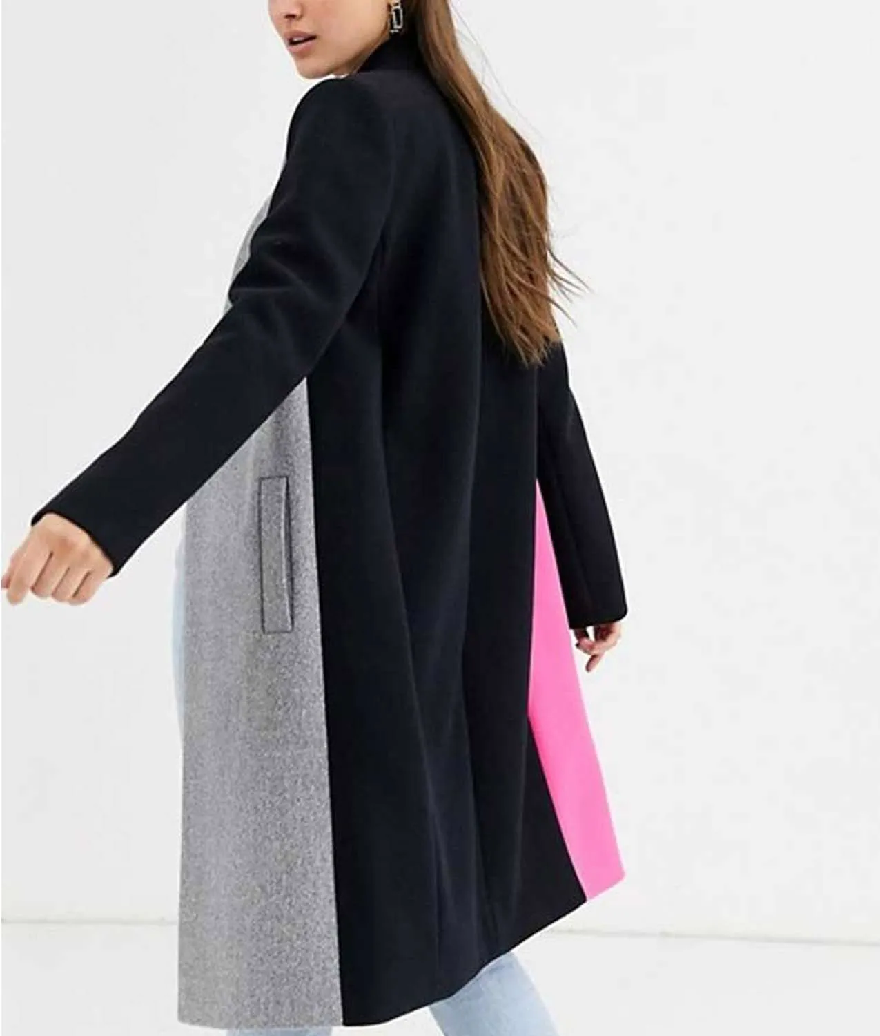 - Color: pink, grey and black color blocks