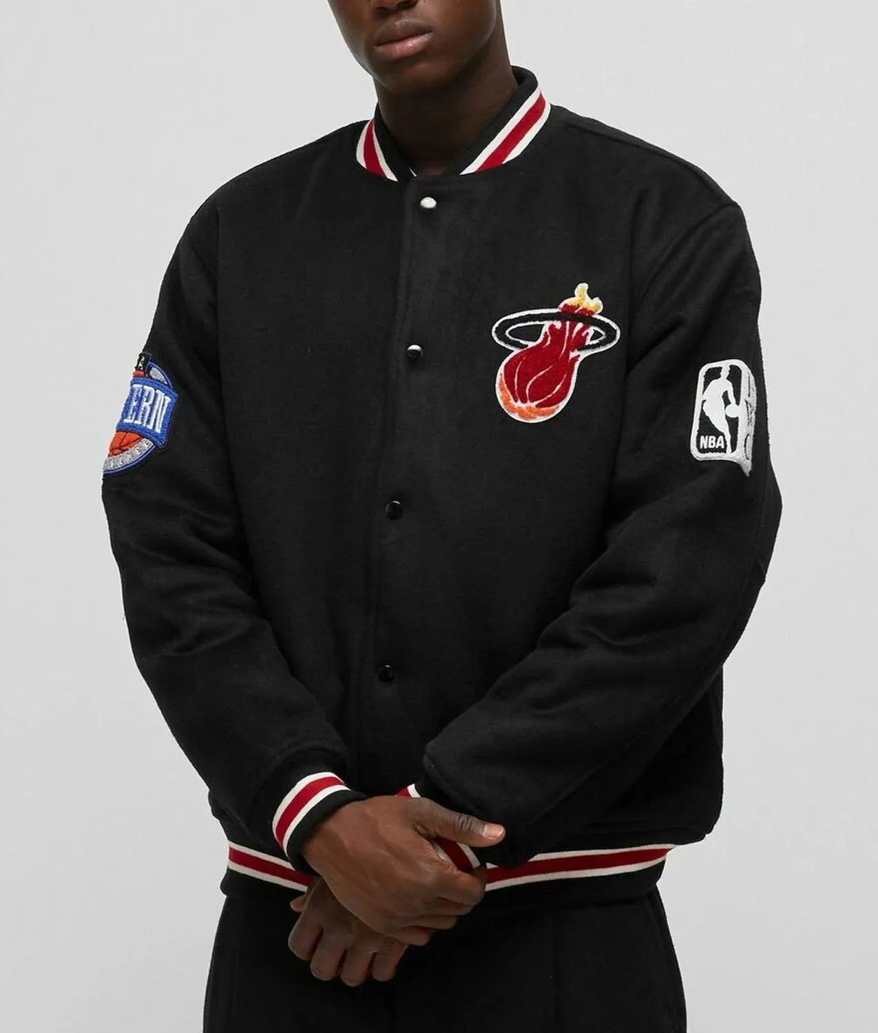 Miami Heat Hardwood Classics Black Varsity Wool Jacket